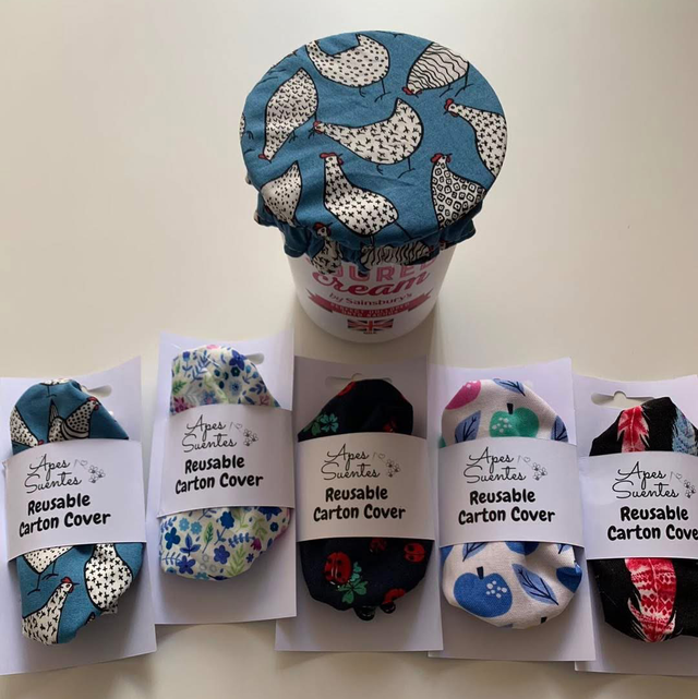 Perfect for keeping your cream or yoghurt fresh. Made with food safe PUL liner and 100% cotton outer, they are machine washable and a great eco-friendly alternative to clingfilm and foil.